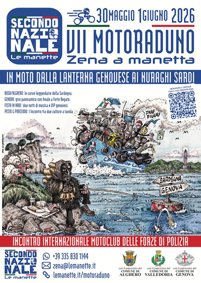 VII MotoRaduno Zena a Manetta SECONDO NAZIONALE Le Manette Dal 30 Maggio al 1 Giugno: molliamo gli ormeggi e diamo gas! Pronti a piegare… sulle onde? Quest’anno il nostro raduno nazionale si sposta sul mare! Abbiamo organizzato una roba mai vista: una crociera motociclistica su nave GNV. Sardegna, curve liguri, feste in nave con VIP genovesi e il cuore grande della beneficenza. Apertura iscrizioni: 15 Febbraio. Preparate i bagagli, quest’anno si viaggia in prima classe (ma con il giubbotto da moto!).