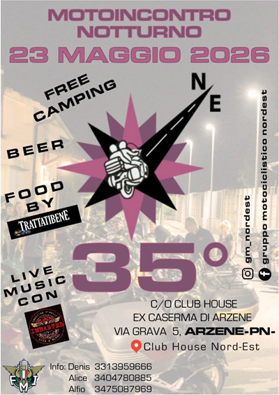 Arrivati alle 35 candeline ci troveremo per il nostro Motoincontro Notturno in club house!!🏍️🏍️🏍️ Come sempre ci sarà la possibilità di cenare con la cucina di Trattatibene, bere fiumi di birra e di piantare la tenda, il tutto con la musica live degli Imbasted!! 🍔🎶🏍️🎸🍻 Vi aspettiamo!!!